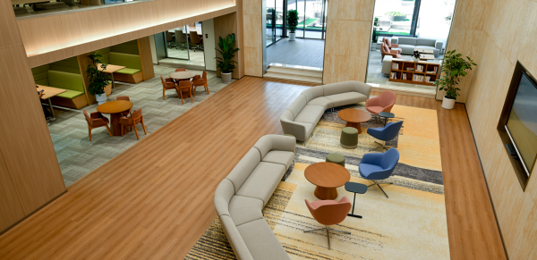 在温控系统方面,园区部署的VRV空调系统可实现夏季25℃、冬季20℃的恒温环境,配合30立方米/人小时的新风系统,从物理环境层面改善办公人员的生理舒适度与工作效率。10厘米架空地板的标准化交付,则为企业提供了灵活的综合布线空间,降低了后期空间改造的工程成本。