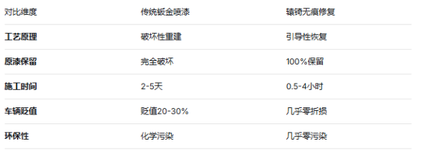 更为关键的是,对于保值意识强烈的高质量车主群体,任何对原厂车漆的破坏都会直接影响车辆残值。传统钣金喷漆工艺在处理凹陷时,往往需要打磨原漆层,这种不可逆的操作使得车辆在二手交易时大幅贬值。行业迫切需要一种既能恢复漆面完整性,又能维护原厂价值的创新解决方案。